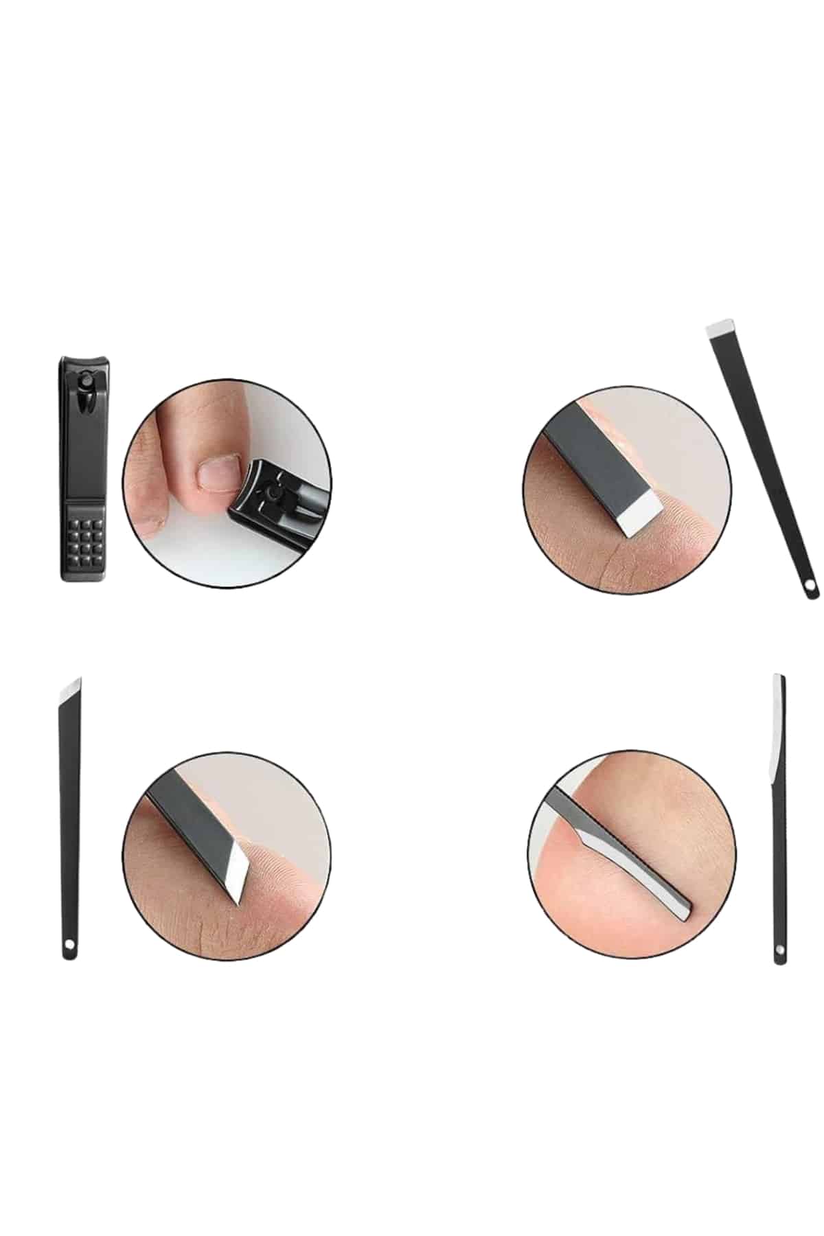 Kendi el ve ayak bakımınızı profesyonel düzeyde yapmak isteyenler için tasarlanan bu 17 parçalık manikür seti, yüksek kaliteli paslanmaz çelik malzemeden üretilmiştir. Dayanıklı ve hijyenik yapısıyla kolay temizlenebilir, uzun ömürlüdür ve korozyona karşı koruma sağlar. Yeni nesil siyah kaymaz parlatma teknolojisi, hem estetik bir görünüm sunar hem de aletlerin kavranmasını ve kullanılmasını kolaylaştırır. Özel tasarımlı deri kaplama kutusu, tüm parçaları düzenli bir şekilde saklamanıza olanak tanırken, hafif ve taşınabilir yapısıyla seyahatlerinizde de yanınızda bulundurabilirsiniz. Büyük, küçük ve sivri uçlu tırnak makasları, törpü, cımbız, çeşitli pedikür bıçakları, tırnak kaldırma aleti ve kulak temizleme aparatı gibi geniş bir içeriğe sahip bu set, bakımınızı zahmetsiz ve pratik hale getirir. Kendiniz veya sevdikleriniz için şık ve fonksiyonel bir hediye alternatifi olarak da tercih edebilirsiniz.