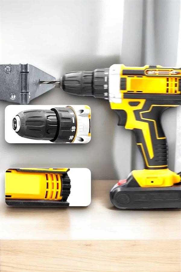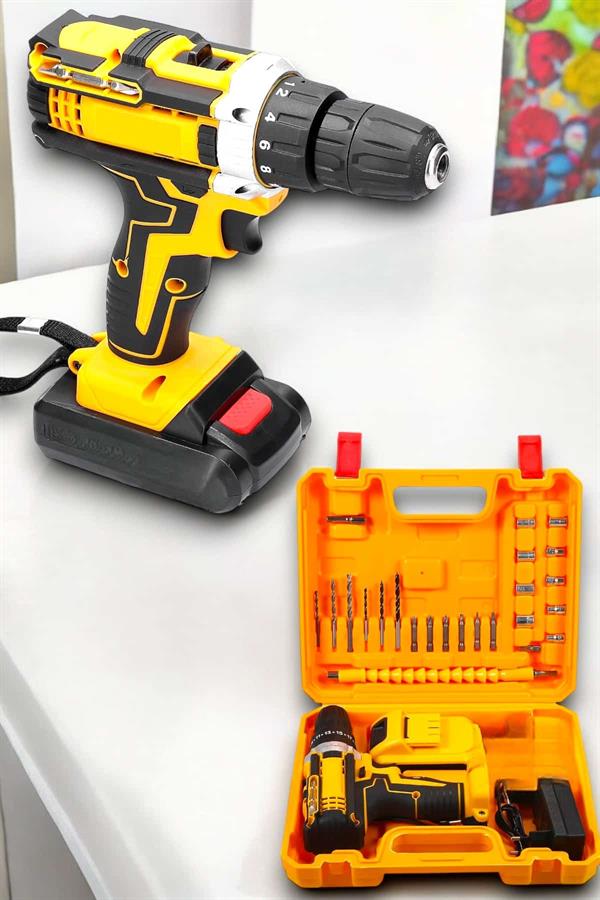 • 24 Parça Çift Bataryalı Şarjlı Matkap Seti 24W Motor ve Otomatik Mil Kilitli Tasarım