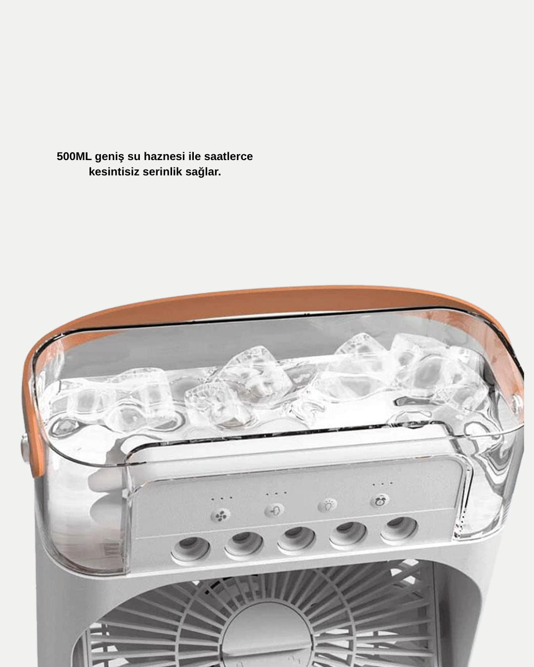 3’ü 1 Arada Mini Klima Fan USB Şarjlı, 7 Renk Gece Lambalı ve Nemlendirici