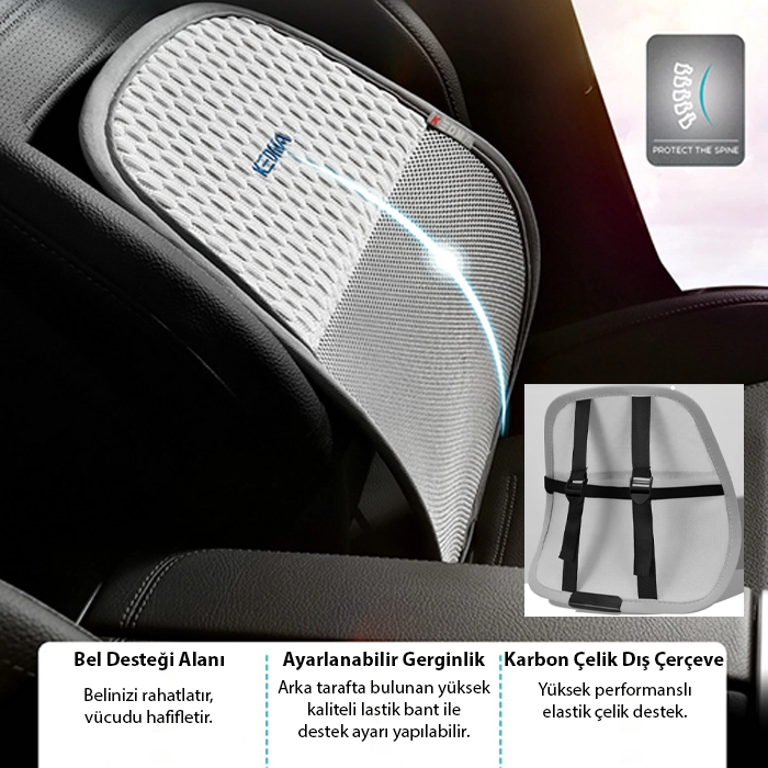 Yüksek elastikiyete sahip kavisli gövdesi sayesinde bel omurgasıyla kusursuz şekilde uyum sağlar. Sırt ile koltuk arasındaki boşluğu doldurarak uzun oturmalarda oluşan ağrı, baskı ve rahatsızlık hissini azaltır.
