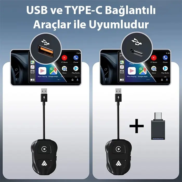 Ally iPhone-Android Kablosuz Carplay 5ghz Adaptör Çevirici -Youtube Netflix Tiktok Video Yansıtıcı