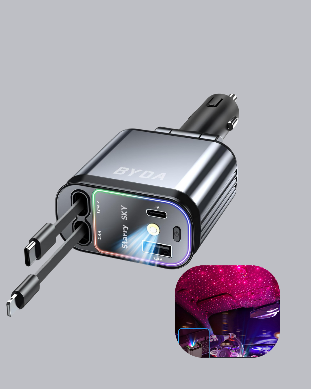 Yolda geçirdiğiniz zamanı daha verimli hale getirin! Araç Şarj Cihazı 66W 4 Portlu Hızlı Şarj ve LED Işıklı, güçlü performansı ve modern tasarımıyla araç içi şarj deneyimini yeniden tanımlıyor.66W toplam güç çıkışı ile aynı anda dört cihazınızı yüksek hızda şarj edebilir, telefon, tablet, akıllı saat veya kulaklıklarınızı güvenle enerjiyle buluşturabilirsiniz.PD (Power Delivery) ve QC (Quick Charge) teknolojileri sayesinde cihazlarınıza en uygun akımı otomatik olarak iletir, böylece pil sağlığını korurken hızlı şarj imkânı sunar.Çekilebilir kablo tasarımı (80 cm’ye kadar uzayabilir) sayesinde kablo karmaşasına son verir ve aracınızda düzenli bir görünüm sağlar.180 derece dönebilen başlık, farklı araç modellerine ve priz konumlarına uyum sağlar. Sallantılarda gevşeme yapmaz, sabit ve güvenli bir bağlantı sunar.LED atmosfer ışıkları, sadece estetik bir görünüm kazandırmakla kalmaz, aynı zamanda gece sürüşlerinde kullanım kolaylığı sağlar.12V-24V geniş uyumluluk özelliği sayesinde otomobil, SUV, minibüs ve kamyonlarda kullanılabilir. Kompakt ve dayanıklı yapısı uzun ömürlü kullanım sunar.Şık tasarımı, yüksek performansı ve pratik özellikleriyle Araç Şarj Cihazı 66W 4 Portlu Hızlı Şarj ve LED Işıklı, her yolculukta vazgeçilmez bir yardımcıdır!