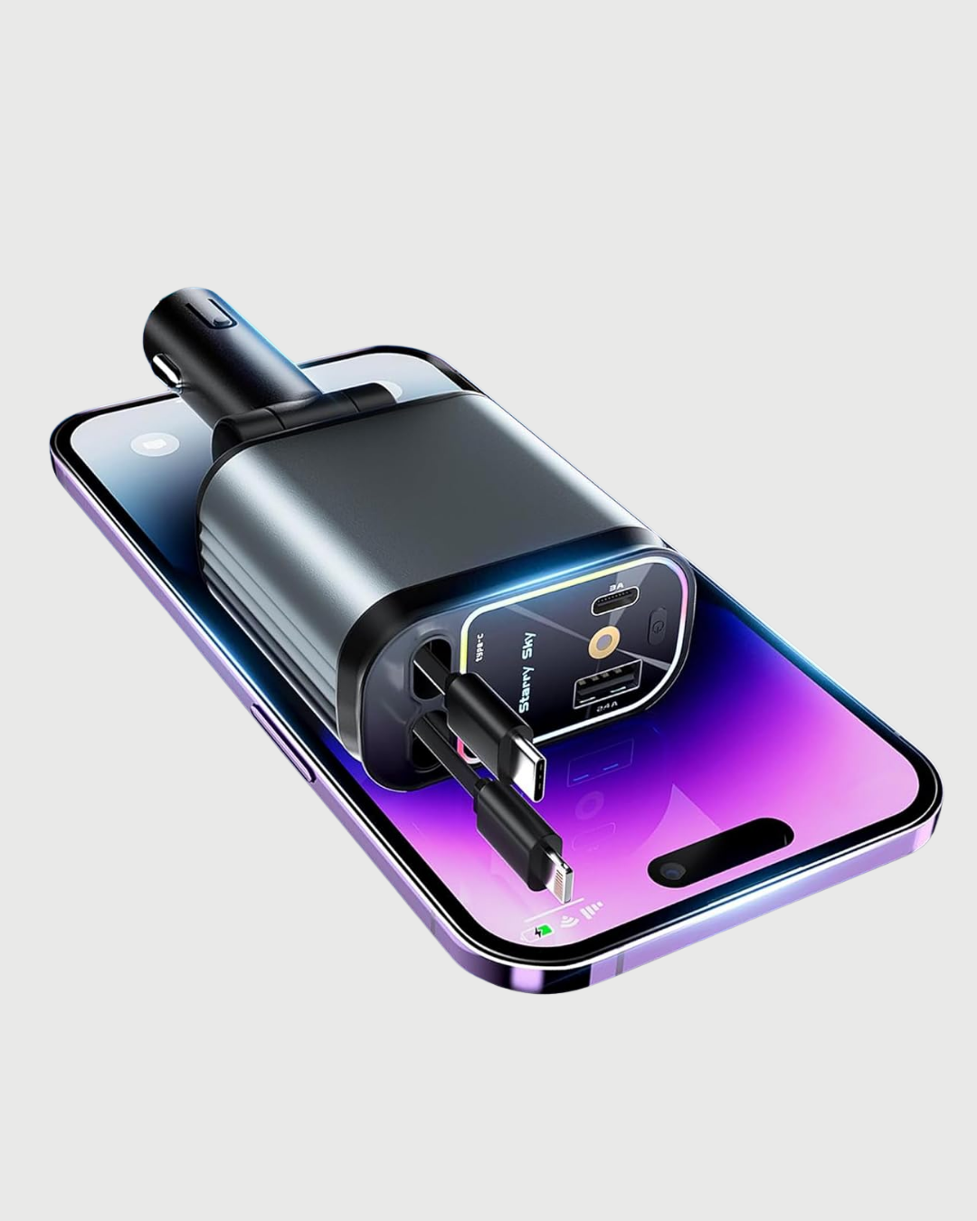 Aracınızda düzeni korumak ve aynı anda birden fazla cihazınızı güvenle şarj etmek artık çok kolay! 66W gücünde 4 portlu bu araç şarj cihazı, günlük yolculuklardan uzun seyahatlere kadar her ihtiyacınızı karşılamak için tasarlandı. Kompakt ve çekilebilir kablo yapısı sayesinde kablo karmaşasını ortadan kaldırır, aracınızı daha düzenli ve şık hale getirir. 80 cm’ye kadar uzayabilen kablosu, sürüş esnasında esneklik sunarken aynı zamanda kullanım kolaylığı sağlar.Gelişmiş PD ve QC hızlı şarj teknolojisi ile donatılmış olan bu cihaz, telefon, tablet, kulaklık, akıllı saat ve diğer tüm elektronik cihazlarınızı güvenle şarj eder. 180 derece ayarlanabilir başlığı sayesinde aracınızın her konumunda rahatlıkla kullanılabilir ve sallantılarda gevşeme yapmadan sabit kalır. Ayrıca, LED atmosfer ışıkları ile gece sürüşlerinize keyifli bir ambiyans katar. Müzik ritmine uyum sağlayan ışık modları, araç içi deneyiminizi benzersiz hale getirir.12V-24V uyumluluğu sayesinde otomobil, SUV, minibüs ve kamyonlarda kullanılabilen bu araç şarj cihazı, aynı anda 4 cihazınızı yüksek hızda ve güvenle şarj etmenizi sağlar. Hem şık tasarımı hem de güçlü teknolojisi ile vazgeçilmez bir yol arkadaşıdır.