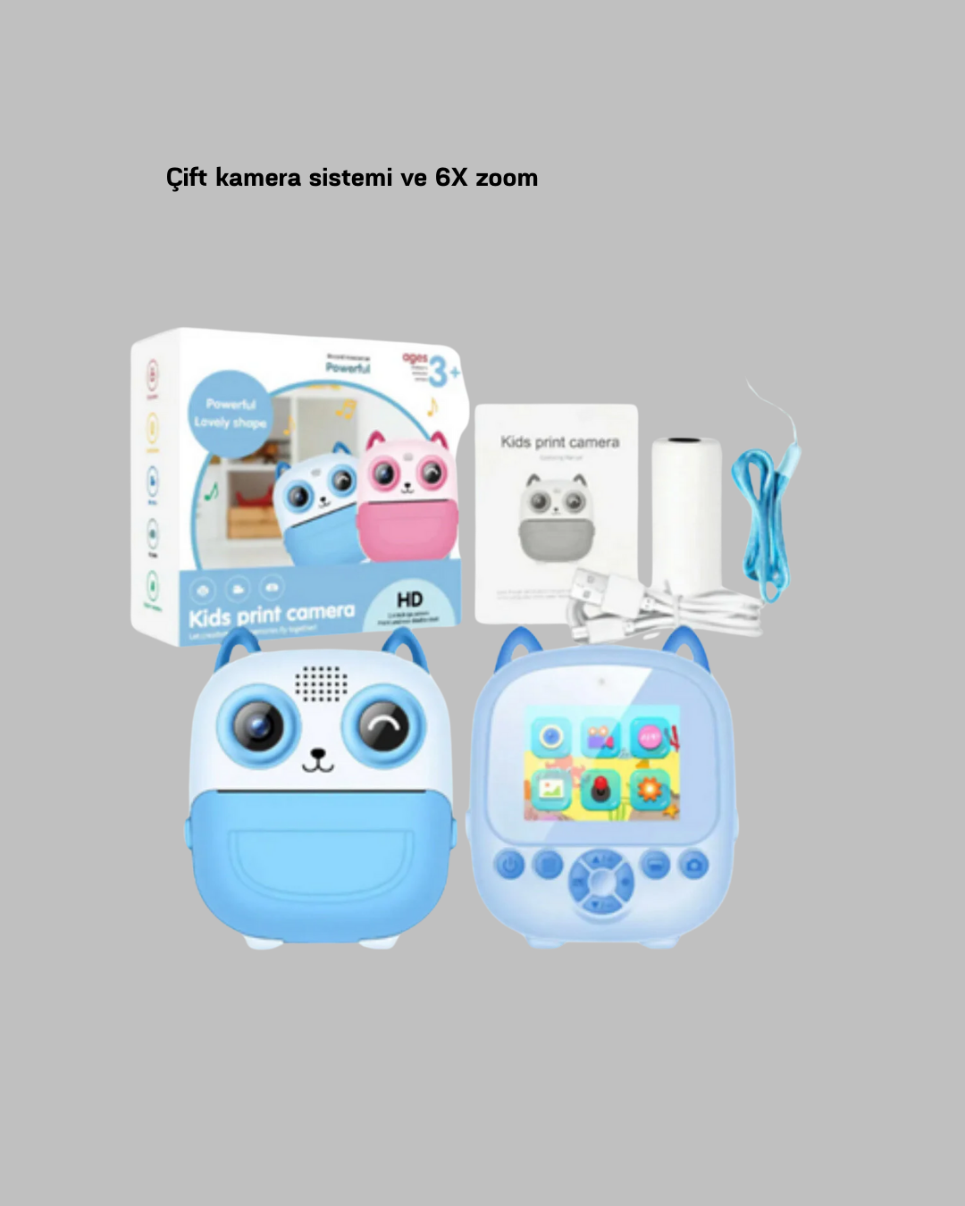 Çocukların fotoğrafçılığa ilk adım atması için tasarlanan bu termal yazıcılı dijital kamera, üstün özellikleriyle eğlenceyi ve öğrenmeyi bir arada sunuyor. 48MP çözünürlük, yüksek kalite çekimler yapmayı sağlarken 1080P video kaydı ile çocuklar kendi filmlerini bile çekebilir. Dış mekân aktivitelerinde, doğa gezilerinde veya evde oyun oynarken her anı kayıt altına almak artık çok daha kolay.Termal baskı özelliği sayesinde çekilen fotoğraflar anında ve mürekkepsiz olarak basılır. Yazıcı kartuşu gerektirmemesi, ürünün bakımını son derece kolaylaştırır ve ekonomik hale getirir. Baskı hızının yüksek olması sayesinde çocuklar “çek-bas” şeklinde hızlı bir eğlence deneyimi yaşayabilir. Çocuklar kendi fotoğraf albümlerini, defter süslemelerini veya kişisel anı koleksiyonlarını anında oluşturabilir.Cihazın çift kamera tasarımı, selfie çekimlerini eğlenceli hale getirirken ön kamera ile yaratıcı fotoğraf deneyimleri sağlar. 6X büyütme (zoom) özelliği, çocuklara uzak nesneleri daha detaylı çekme fırsatı sunar. Büyük 2.4 inç ekran, fotoğraf ve videoları net şekilde görüntülemeyi sağlar.Ürün yalnızca bir kamera değildir—içerisindeki eğlenceli oyunlar, müzik çalar ve efekt seçenekleri sayesinde çok yönlü bir eğlence cihazına dönüşür. Çocuklar fotoğraflarına çerçeve, ikon ve komik filtreler ekleyebilir; böylece yaratıcılıklarını daha da geliştirebilir.1300mAh güçlü batarya, uzun çekim süreleri için dayanıklıdır. Type-C hızlı şarj özelliği ürünün her ortamda rahatça kullanılmasını sağlar. 32GB hafıza kartı desteği, binlerce fotoğrafı güvenle saklamayı mümkün kılar.Hem dayanıklı gövdesi hem de çocuk dostu tasarımı ile bu dijital kamera, teknolojiyle eğlenceyi bir araya getiren mükemmel bir hediye seçeneğidir. Çocukların hayal gücünü destekler, üretme isteğini güçlendirir ve unutulmaz anılar biriktirmelerini sağlar.