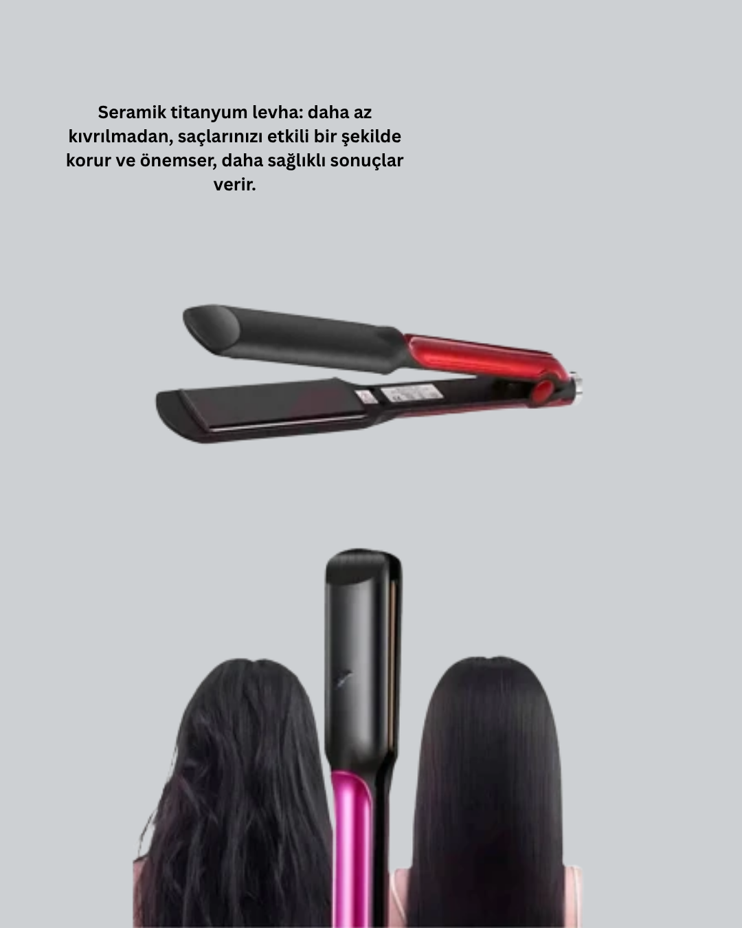 Elektriklenmeyi Azaltan İyonlu Saç Düzleştirici – Titanyum Plaka ve Şık Tasarım