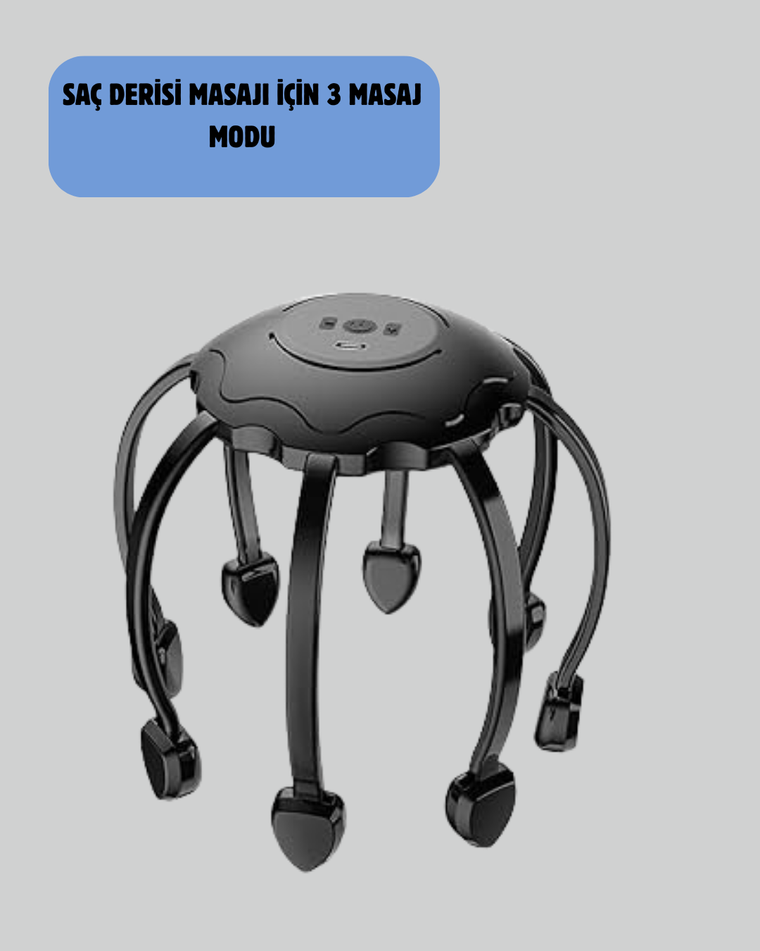 Bu gelişmiş kafa masaj cihazı, uyku öncesi rahatlama sağlamak ve zihni sakinleştirmek için özel olarak tasarlanmıştır. 8 motorlu masaj başlıkları, saç derisindeki sinir uçlarını uyararak vücudun doğal rahatlama mekanizmasını harekete geçirir. Bu sayede stres hormonları azalır, huzur ve dinginlik hissi artar. Uykusuzluk ve sık sık bölünen uyku problemi yaşayan kullanıcılar için harika bir destek ürünüdür.360 derece kapsama alanı sunan masaj kolları, baş çevresini tam olarak sarar ve çok noktalı baskı uygulayarak masajı eşit şekilde dağıtır. Bu teknoloji, profesyonel bir masaj salonunda alınan derin doku masajını ev ortamında sunmayı hedefler.Cihazın üç masaj modu, kullanıcıya tamamen özelleştirilebilir bir deneyim sunar. Hafif mod, uyku öncesi sakinleşmek için idealdir. Orta mod, gün içindeki gerginliği azaltır. Yoğun mod ise saç derisine çok noktalı güçlü titreşim göndererek sertleşen kasların gevşemesini sağlar.USB şarjlı yapısı pratik kullanım sunarken, cihazın sessiz motoru gece kullanımına uygundur. Gürültü yaratmadan tüm odanın rahatlatıcı bir etkiye kavuşmasını sağlar. Uzun süreli oturmalar, bilgisayar başında geçen saatler ve stresli günler ardından hızlı rahatlama sunar.Düzenli kullanım, saç köklerinin beslenmesini artırır, kan dolaşımını hızlandırır ve daha canlı bir saç derisi sağlar. Stres kaynaklı baş ağrılarını hafifletmeye yardımcı olur. Evde, işte veya yolculuklarda kullanılabilen bu hafif ve taşınabilir masaj cihazı, uyku kalitesini artırmak isteyenlerin vazgeçilmez yardımcısıdır.