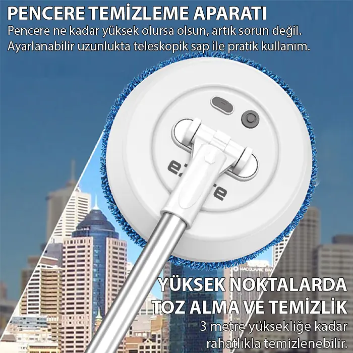 Ayarlanabilir sap yapısı ile yüksek camlar, duvarlar ve zor alanlar artık sorun değil. Maksimum erişim ile konforlu kullanım sunar.