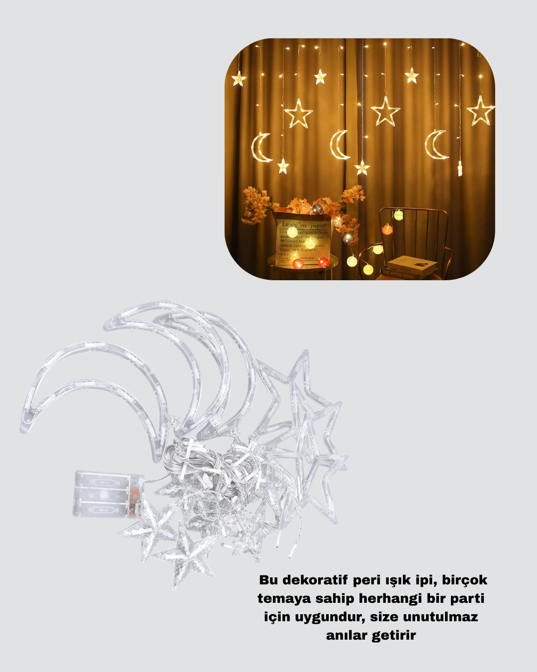 İç ve Dış Mekan Uyumlu Pilli Yıldız Ay Peri Led Perde