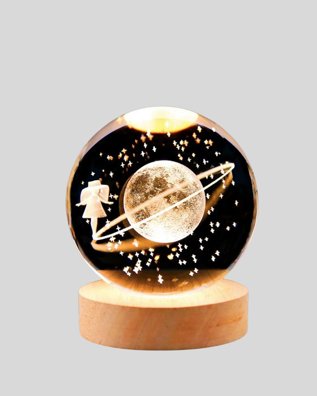 Işıklı Sarı Cam Küre ve Kız Figürü Ahşap Standlı Dekoratif Lamba