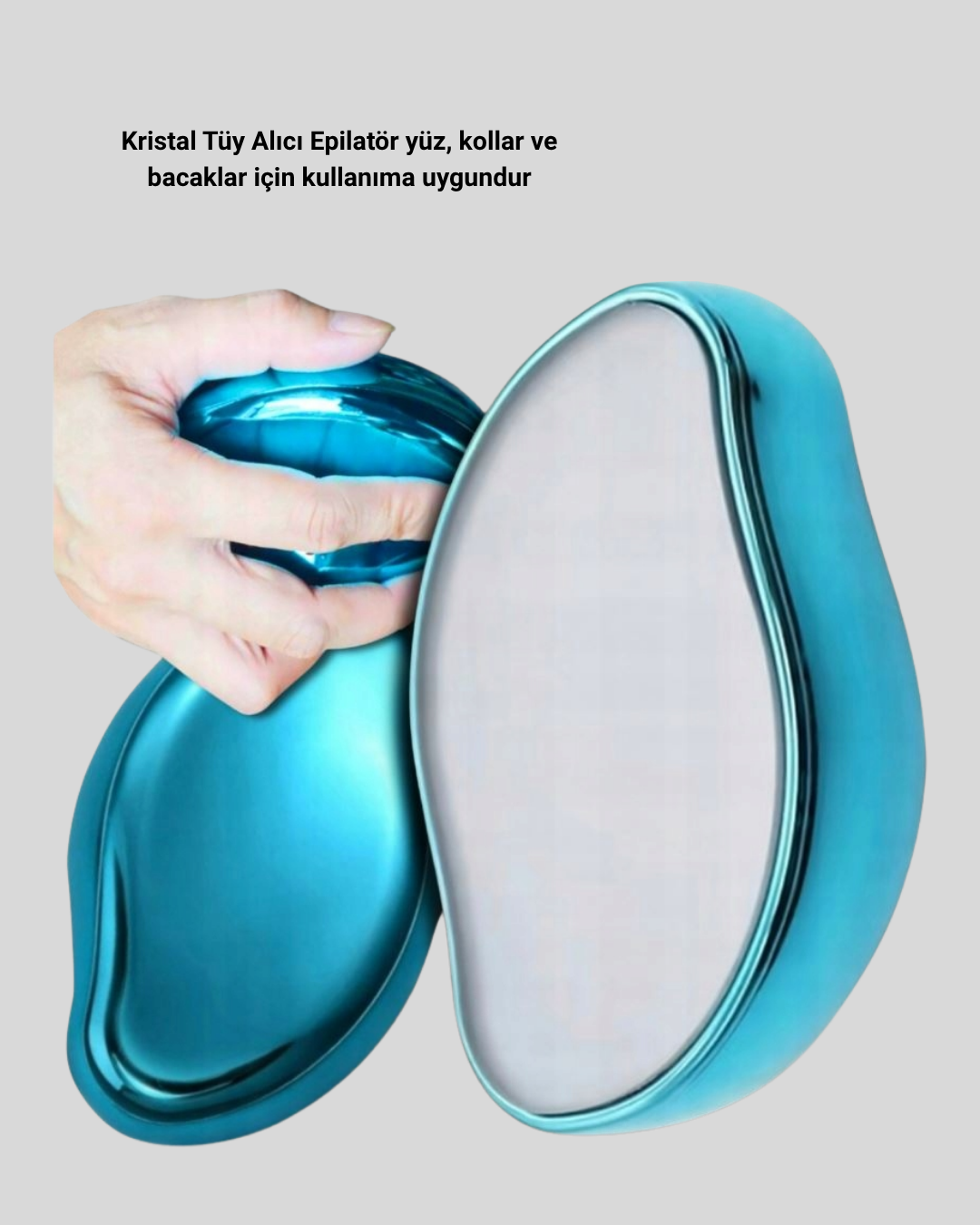 Kristal Tüy Alma Aparatı, modern epilasyon yöntemlerini evinizin konforuna taşıyan pratik ve acısız bir tüy temizleme çözümüdür. Geleneksel ağda, tıraş ve kimyasal ürünlerin aksine bu epilatör sadece kristal yüzeyiyle çalışır ve hiçbir ek malzeme gerektirmez. Cilt üzerinde nazik bir şekilde tüyleri alırken aynı zamanda peeling etkisi yaratarak cildin daha pürüzsüz görünmesine yardımcı olur.Ürün yüz, kol, bacak ve hassas bölgelerde kullanılmak için özel olarak tasarlanmıştır. Haftada 2–3 kez düzenli kullanımda tüylerin zayıflamasına, daha geç çıkmasına ve cildin daha temiz bir görünüme kavuşmasına yardımcı olabilir. Topuklarda ve dirseklerde biriken kalınlaşmış ölü deri tabakasını temizleyerek pedikür etkisi yaratması ise en büyük avantajlarından biridir.Kullanımı son derece basittir: Tüy alınacak bölge ılık suyla yıkanır, ardından epilatör cilt üzerinde dairesel hareketlerle uygulanır. Cildin doğal yapısına zarar vermeyen kristal yüzeyi, kesik oluşturmaz ve tahrişi minimuma indirir. İşlem bittiğinde yalnızca suyla durulayıp kurumaya bırakmak yeterlidir. Uygulama yapılan bölgeye losyon uygulanması cildi yatıştırır ve nem dengesini korur.Hijyenik ve uzun ömürlü olması sayesinde tek ürünle uzun süre bakım yapma imkânı sunar. Şarj, pil veya ek ürün gerektirmediği için hem ekonomik hem pratik bir çözümdür. Minimal ve hafif tasarımı çantaya atıp taşımayı kolaylaştırır.Ağda acısı, jilet tahrişi veya lazer masrafları olmadan pürüzsüz bir cilt isteyen herkes için ideal olan bu kristal epilatör, modern ve sağlıklı bir bakım alternatifi sunar.