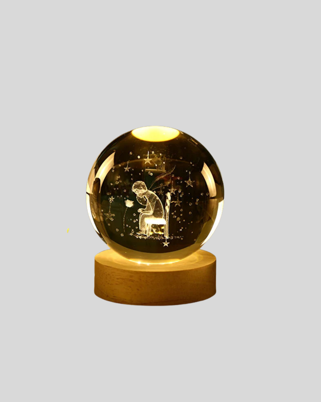 Küçük Prens Cam Küre USB Işıklı Ahşap Standlı Büyük Boy