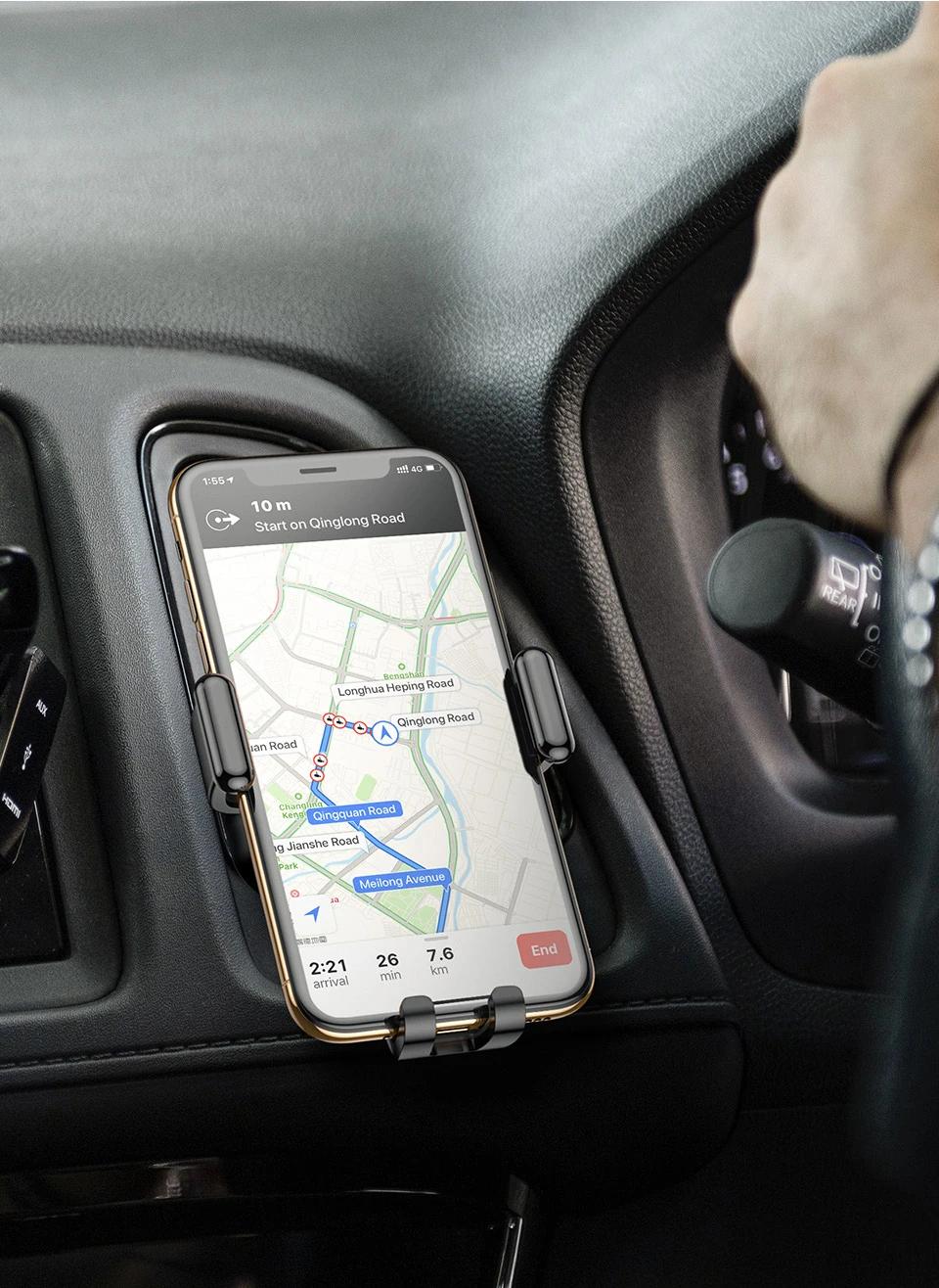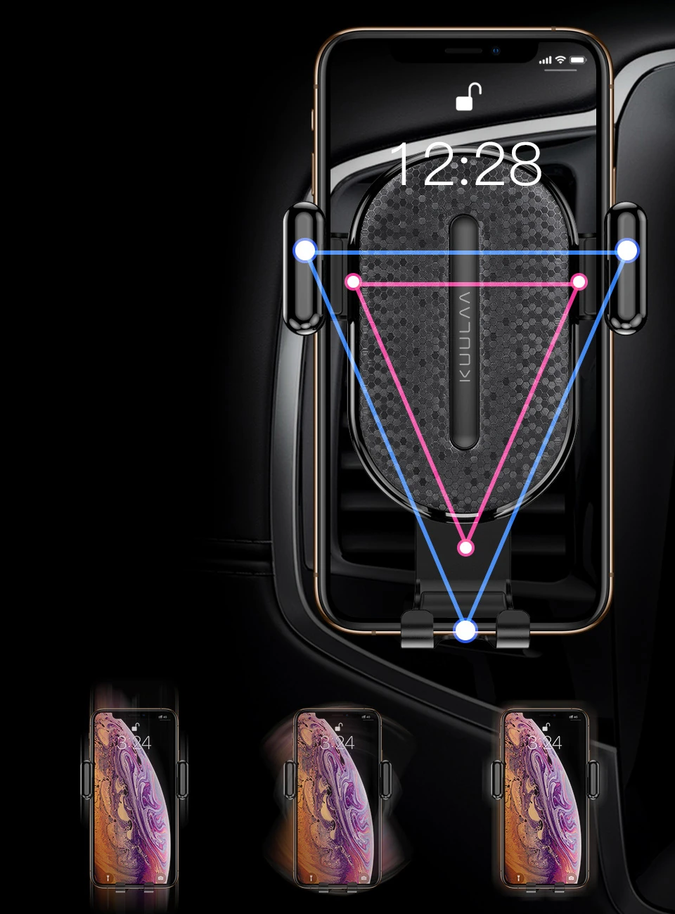 Üçgen kelepçe noktası tasarımı / ani frenleme durumunda telefonu sıkıca tutar