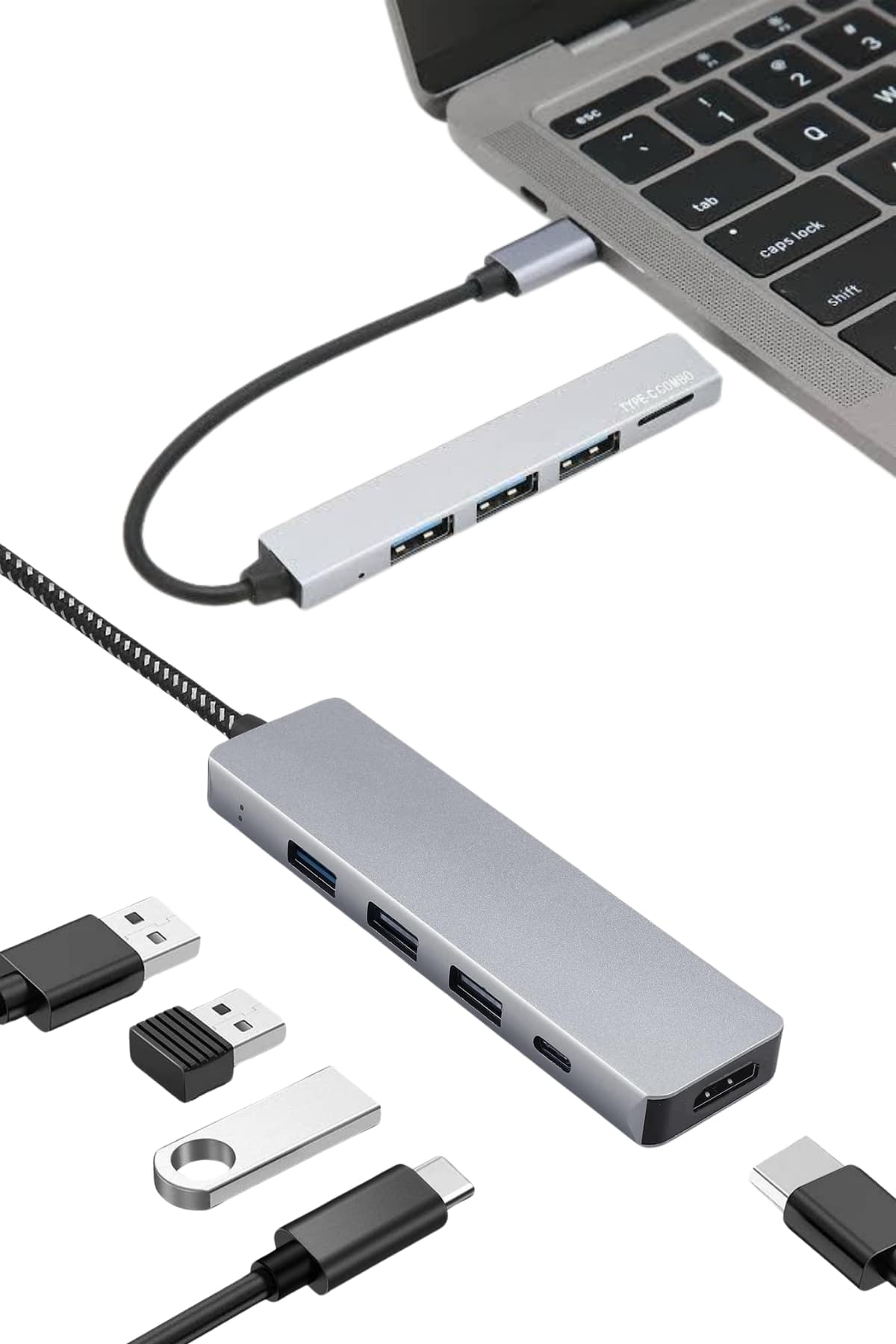 Macbook Pro/air Uyumlu USB Type-C 8 In 1 Hub Dönüştürücü Çevirici Çoklayıcı USB Hdmı Micro Sd 8 Girişli