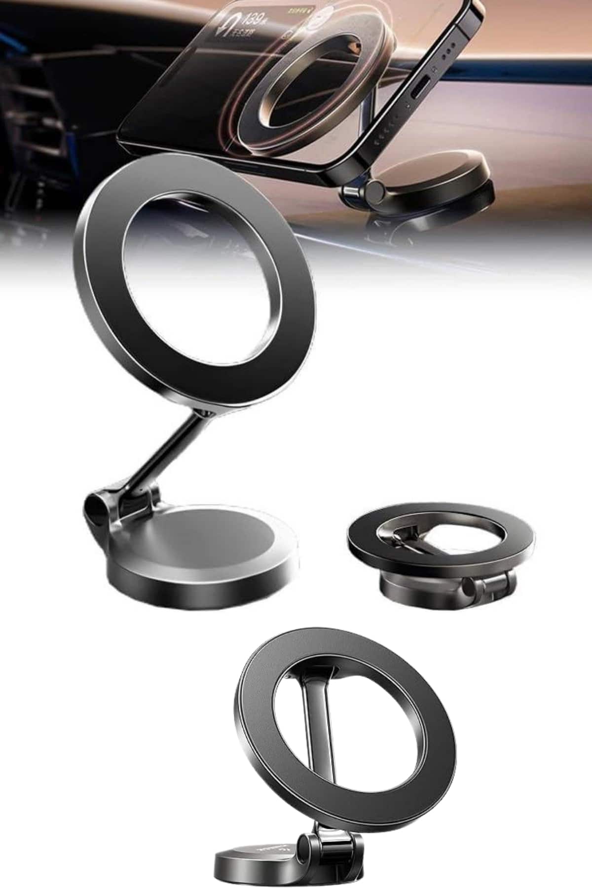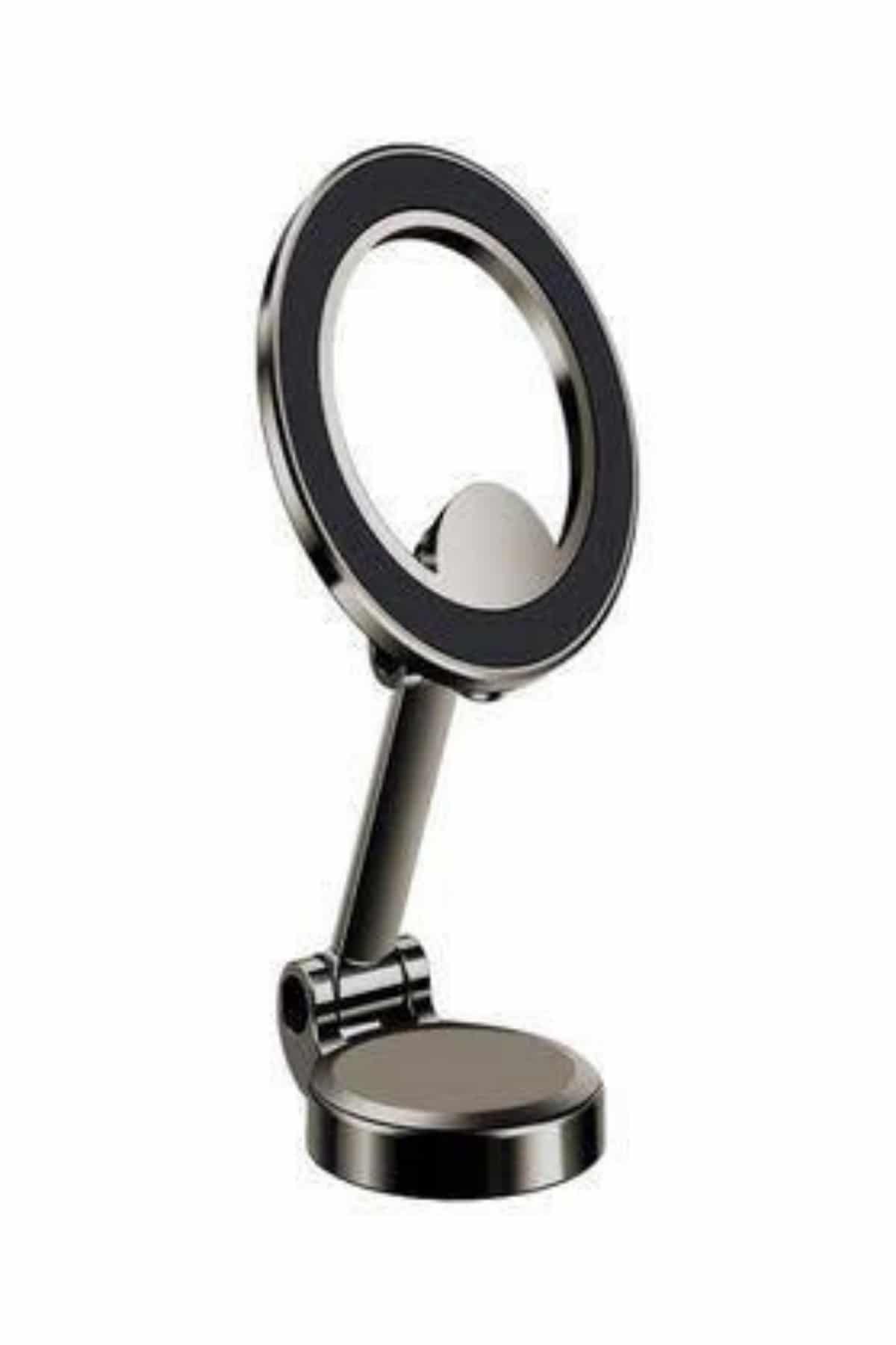 Kompakt ve taşınabilir tasarımıyla öne çıkan bu telefon tutucu, hem masaüstü kullanımlarda hem de hareket halindeyken pratik bir çözüm sunar. Küçük boyutları sayesinde çalışma masanızda, aracınızda ya da evinizin farklı alanlarında rahatlıkla kullanılabilir. Katlanabilir mekanizması sayesinde fazla yer kaplamaz; kolayca çantanıza, aracınıza ya da çekmecenize yerleştirilebilir, böylece dilediğiniz her an yanınızda taşıyabilirsiniz.Ürünün güçlü mıknatıs ve vakum teknolojisiyle donatılmış yapısı, maksimum güvenlik ve kararlılık sunar. Çift katmanlı N52 Neodimyum mıknatıslar sayesinde telefonunuzu sıkıca kavrarken, yüksek manyetik çekim gücü cihazınızın kaymasını ya da düşmesini etkili bir şekilde önler. Vakumlu taban yapısı sayesinde pürüzsüz yüzeylere güçlü bir şekilde yapışır ve uzun süreli sabit bir kullanım sağlar. Bu sayede, ürünü hareket ettirmeden dilediğiniz gibi telefonunuzu kullanabilirsiniz.Çinko alaşımlı destek çubuğu ve 360 derece dönebilen başlık yapısı sayesinde kullanım esnekliği en üst seviyeye taşınır. Telefonunuzu hem yatay hem de dikey pozisyonda kolayca konumlandırabilir, böylece izleme açınızı kişisel ihtiyaçlarınıza göre ayarlayabilirsiniz. Sürüş esnasında navigasyon kullanımı, mutfakta tarif okuma ya da masanızda video izleme gibi pek çok senaryoda konforlu ve güvenli bir kullanım sağlar.Modern görünümüyle her ortama uyum sağlayan bu telefon tutucu, dayanıklılığı, fonksiyonelliği ve estetik tasarımı bir arada sunar. Teknolojiyi hayatınıza daha pratik ve şık bir şekilde entegre etmek isteyen kullanıcılar için ideal bir yardımcıdır.