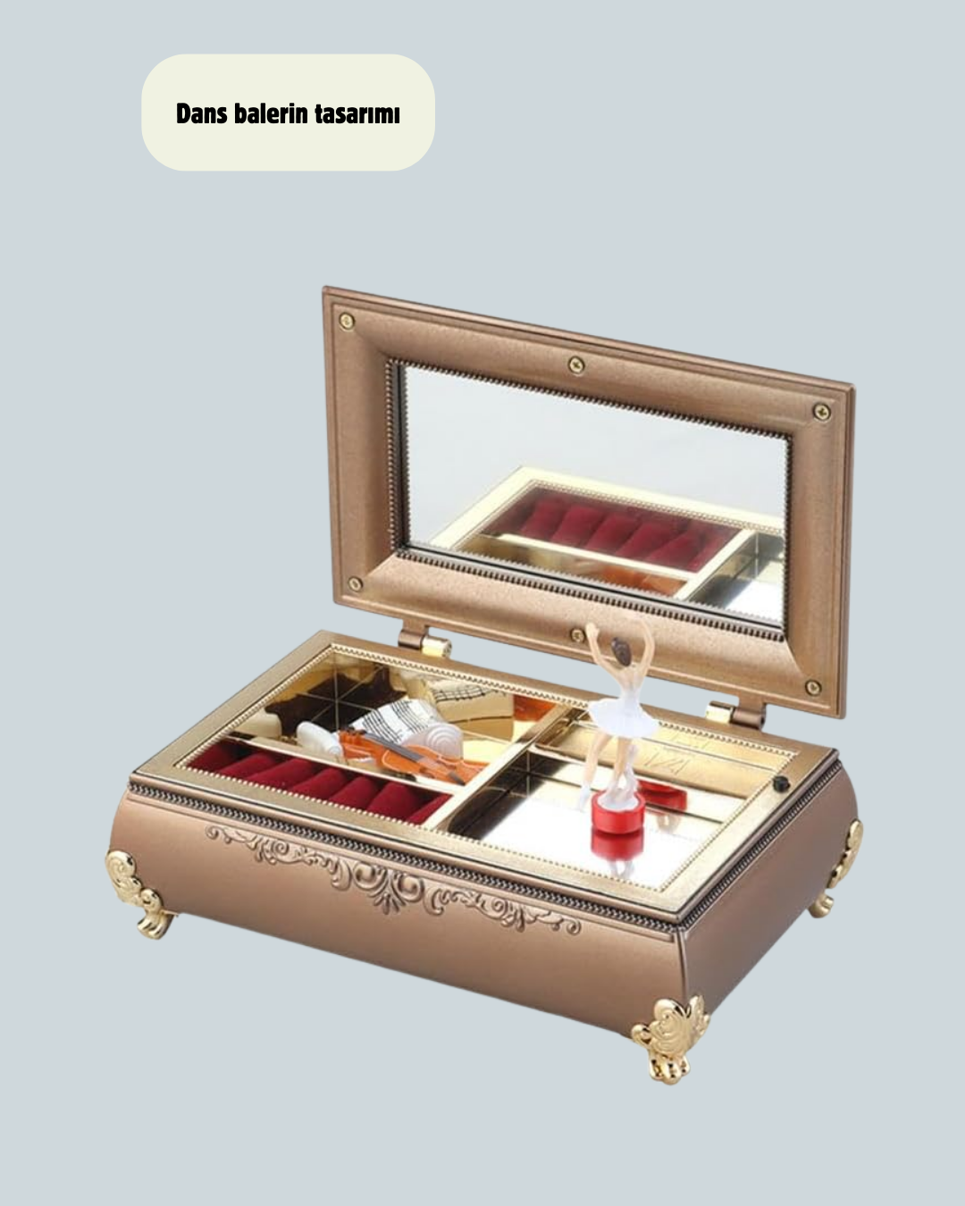 Piyano tasarımlı balerinli müzik kutusu, klasik zarifliği modern bir hediye alternatifiyle buluşturan etkileyici bir üründür. Üst yüzeyde kullanılan fırın boya teknolojisi sayesinde renkler canlı, parlak ve kaliteli bir görünüm sunar. Gerçek bir piyanonun hatlarına benzeyen tasarım, ürünün dekoratif değerini artırır.Kutu açıldığında balerin figürü kullanıcıyla buluşur. Müzik eşliğinde sergilenen bu balerin teması, özellikle çocuklar ve genç kızlar için romantik ve masalsı bir atmosfer ortaya çıkarır. Melodinin yumuşak tınısı, ürünü sadece görsel bir obje olmaktan çıkarıp duygusal bir deneyime dönüştürür.Takı saklama bölmeleri ürünün en işlevsel yönlerinden biridir. İç bölümde yer alan küçük bölmeler yüzük, küpe, bileklik, kolye gibi aksesuarları düzenli bir şekilde saklamaya yardımcı olur. Bu sayede hem güzel bir müzik kutusuna sahip olunur hem de takılar pratik şekilde organize edilir.Hediye olarak düşünüldüğünde oldukça etkileyici bir seçenektir. Kız çocukları, genç kızlar, dans ve bale ile ilgilenenler, müzik kutusu koleksiyonu yapanlar için ideal bir armağandır.Ürün; doğum günü hediyesi, yılbaşı, karne ödülü, çocuk odası dekoru veya özel gün sürprizi olarak kullanılabilir. Şık görünümü sayesinde vitrin, makyaj masası, komodin veya çalışma masası üzerinde sergilenebilir.Balerinli müzikli takı kutusu, kullanıcıya hem estetik bir görsel şölen hem de pratik saklama alanı sunan çok yönlü bir üründür. Sahip olduğu kalite detayları ve romantik atmosferiyle her yaş grubuna hitap eden özel bir parçadır.