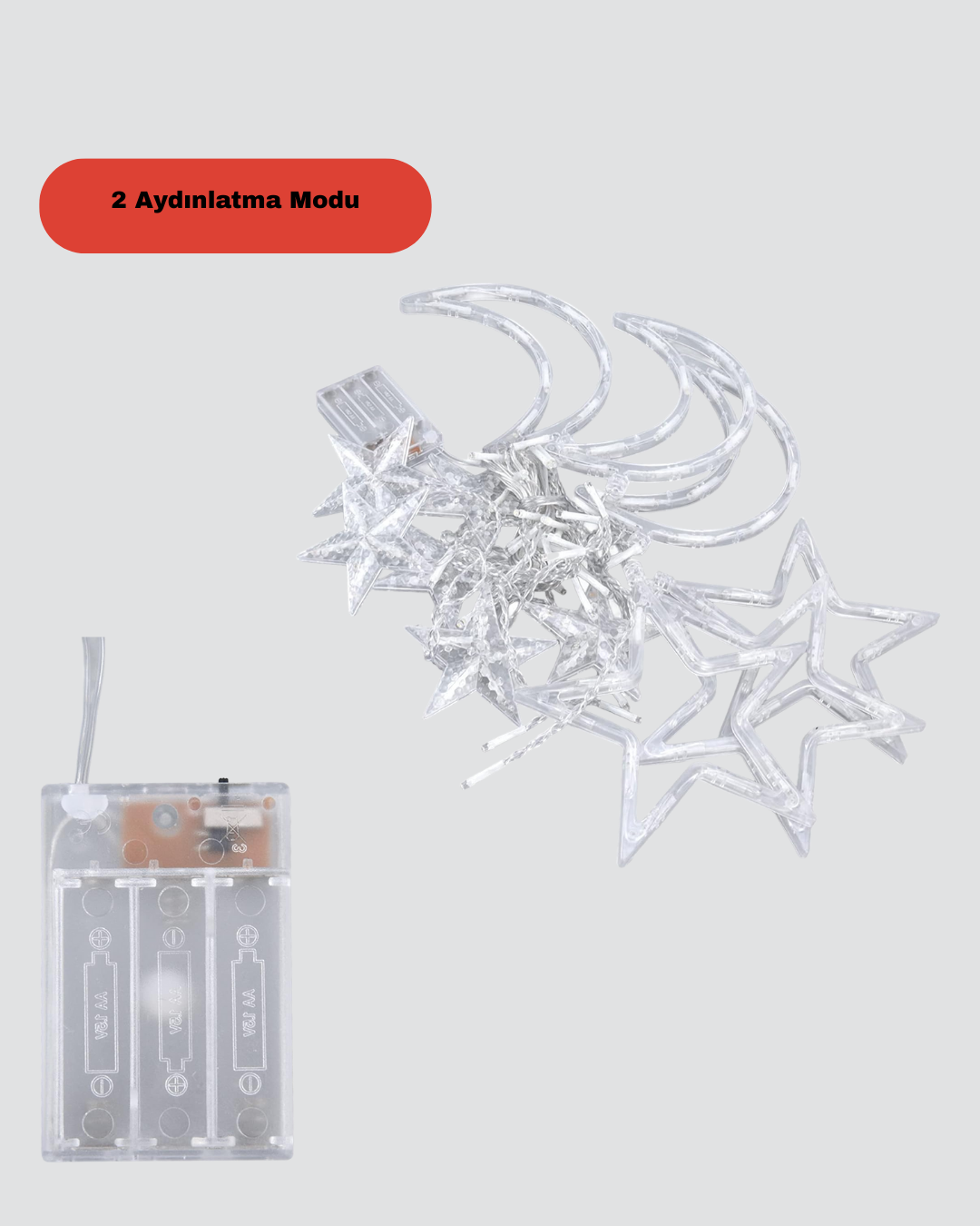 Pilli Çalışan Yıldız Ay Perde Led Işık, dekorasyonuna zarif ve romantik bir dokunuş katmak isteyenler için ideal bir aydınlatma çözümüdür. Yıldız ve ay figürleriyle tasarlanan bu perde led, bulunduğu ortama masalsı ve sıcak bir hava kazandırır. Özellikle akşam saatlerinde oluşturduğu yumuşak ışık ile dinlendirici bir ambiyans sağlar.Ürün toplamda 126 adet LED ışık içermektedir. LED ampuller, yüksek ışık verimliliğine sahip olup enerjiyi verimli kullanır. Işıkların yayılımı dengeli olduğu için gözü yormaz ve uzun süreli kullanımlarda bile rahatsızlık vermez. İki farklı aydınlatma modu sayesinde ortamın havasını dilediğiniz gibi değiştirebilirsiniz. Sabit ışık modu sakin ve romantik bir ortam oluştururken, yanıp sönme modu eğlenceli ve dikkat çekici bir görünüm sağlar.Pille çalışıyor olması, ürünü son derece pratik hale getirir. Elektrik kablosu gerektirmediği için kullanım alanı oldukça geniştir. Balkon, bahçe, veranda, giriş kapısı, pencere önü ve duvar dekorasyonlarında rahatlıkla kullanılabilir. Aynı zamanda restoran, kafe, otel, alışveriş merkezi ve ticari alanlarda da dekoratif amaçlı tercih edilebilir.Yüksek kaliteli PVC tel ile kaplı olması sayesinde güvenli bir kullanım sunar. Isınma yapmaz, dokunulduğunda risk oluşturmaz ve çocuklar için de güvenlidir. Kurulumu oldukça kolaydır ve hafif yapısı sayesinde istenilen alana zahmetsizce asılabilir.Ramazan süslemeleri, doğum günü partileri, düğünler, yılbaşı dekorasyonları ve özel organizasyonlar için ideal bir üründür. Estetik görünümü, güvenli yapısı ve pratik kullanımı ile hem ev hem de ticari dekorasyonlarda fark yaratır.