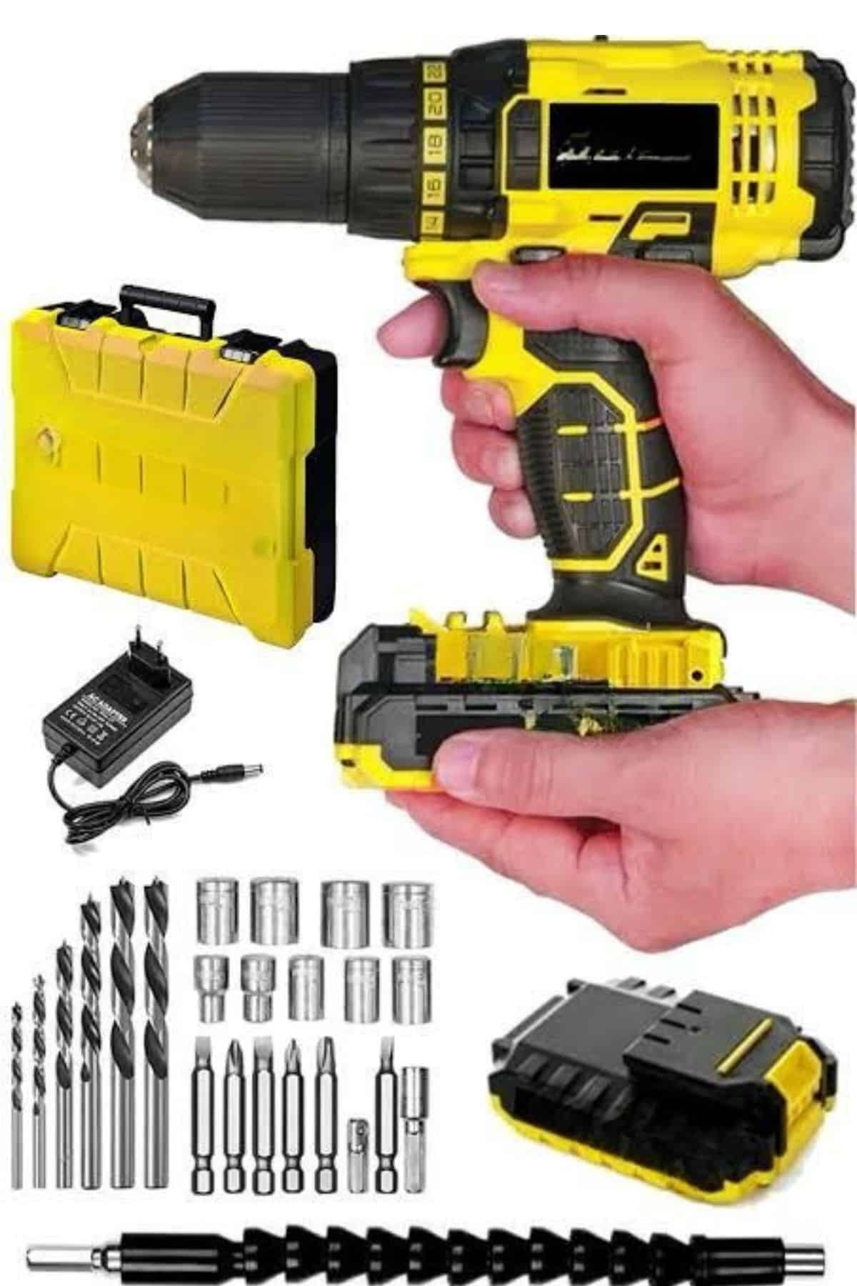 Profesyonel Çift Bataryalı Akülü Vidalama Şarjlı Matkap 24 Parça