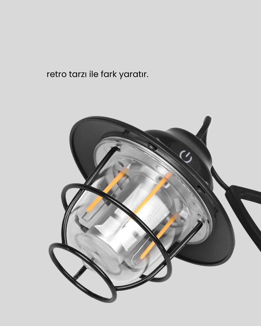 Outdoor aktivitelerinde hem estetik hem de işlevsellik arayan kullanıcılar için tasarlanan bu retro çam konisi tasarımlı kamp lambası, gece ışığı fonksiyonu ve taşınabilir yapısıyla her ortamda güvenle kullanılabilir. Yumuşak ve nazik ışık yayan özel LED aydınlatması sayesinde çadır içinde, balkonda, bahçede veya karanlık açık alanlarda göz almayan, huzurlu bir atmosfer oluşturur. Özellikle gece saatlerinde rahat bir görüş sağlayarak hem güvenlik hem konfor sunar.Cihazın en dikkat çeken özelliklerinden biri olan retro estetik, çam konisi formuyla birleşerek modern tasarım trendlerinin ötesinde nostaljik bir görünüm sunar. Dekoratif anlamda da oldukça şık duran bu gece lambası, hem kamp ortamlarına hem ev kullanımına farklı bir hava katar.Taşınabilir yapısı, ürünün hem kamp çantasında hem de günlük kullanımda kolay şekilde taşınmasına imkân tanır. Hafif gövde tasarımı, yürüyüşlerde, pikniklerde, sahilde veya karanlık patikalarda rahatlıkla kullanılmasını sağlar. Aynı zamanda çadır içi kullanımda yer kaplamadan kullanılabilir ve ortamı aydınlatır.Uzun pil ömrü, bu kamp lambasını outdoor aktiviteleri için ideal hale getiren en önemli özelliklerden biridir. Büyük kapasiteli bataryası sayesinde sık şarj gerektirmeden uzun süre boyunca kullanılabilir. Bu özellik özellikle günlük hayatta priz erişiminin olmadığı yerlerde büyük kolaylık sağlar.Su geçirmez tasarımı, lambayı yağmur, nem ve çiy gibi dış etkenlere karşı dayanıklı hale getirir. IP seviyesinde su geçirmezlik sunan yapı, kamp ve outdoor ortamlarının zorlu şartlarına mükemmel uyum sağlar. Böylece ürünü güvenle çadır dışında da kullanabilirsiniz.Bu retro kamp lambası; kamp, doğa yürüyüşü, balıkçılık, piknik, bahçe etkinlikleri, evde ambiyans oluşturma gibi birçok kullanım alanında hem estetik hem işlevsel bir çözüm sunar. Karanlık ortamları yumuşak ışıkla aydınlatırken hem göz yormaz hem de bulunduğu alana dekoratif bir şıklık katar.