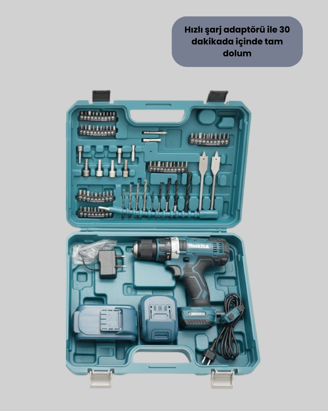 Şarjlı matkap seti, evde, atölyede ve profesyonel işlerde ihtiyaç duyulan tüm temel el aletlerini tek bir çanta içinde sunan kapsamlı bir çözümdür. Akülü yapısı sayesinde kablo kısıtlaması olmadan özgürce çalışmanıza olanak tanır. Vidalama ve delme işlemlerinde pratiklik sağlayan bu set, hem amatör kullanıcılar hem de ustalar için idealdir.Set içerisinde yer alan çift batarya sayesinde kesintisiz çalışma imkânı sunar. Bir batarya kullanımdayken diğeri şarj edilebilir, böylece işlerinizi yarıda bırakmadan devam edebilirsiniz. Şarj adaptörü ile bataryalar güvenli ve verimli şekilde şarj edilir. Ergonomik tutma sapı, uzun süreli kullanımlarda bile konfor sağlar ve el yorgunluğunu azaltır.Zengin uç ve aksesuar içeriği sayesinde ahşap, metal ve plastik yüzeylerde farklı işlemler kolaylıkla yapılabilir. Vidalama uçları, lokma uçlar, ahşap ve metal delme uçları gibi birçok parça set içinde düzenli şekilde yer alır. Tüm parçalar, darbelere dayanıklı taşıma çantası içinde muhafaza edilir ve kaybolma riski minimuma indirilir.Ayarlanabilir tork ve hız seçenekleri, yapılan işe uygun güç kontrolü sağlar. Hassas vidalama işlemlerinden daha güçlü delme işlemlerine kadar geniş bir kullanım alanı sunar. Kompakt ve taşınabilir tasarımı sayesinde evde, bahçede veya farklı çalışma alanlarında rahatlıkla kullanılabilir.Şarjlı matkap seti, tam donanımlı içeriği ve pratik kullanımıyla hem günlük tamirat işlerinde hem de profesyonel uygulamalarda güvenilir bir yardımcıdır.