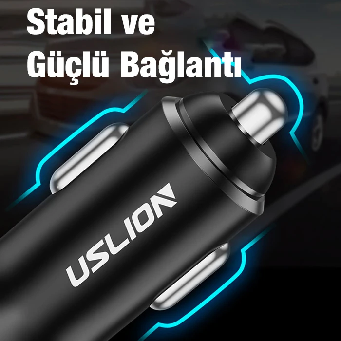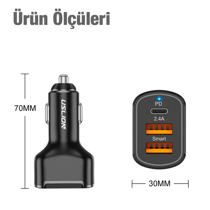 USLİON 30W 2 USB + Type-C Girişli QC3.0 Hızlı Araç Çakmaklık Şarjı
