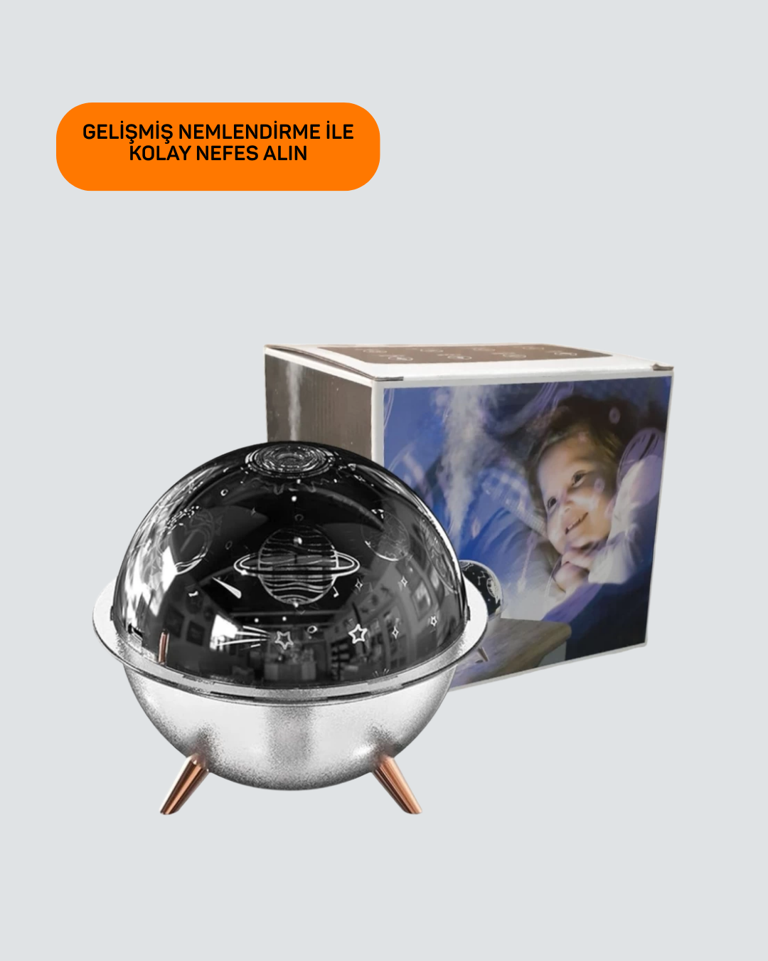 Uzay temalı projeksiyonlu nemlendirici ışık, yaşam alanlarını hem görsel hem de fonksiyonel açıdan dönüştürmek isteyen kullanıcılar için özel olarak tasarlanmıştır. USB’den güç alan yapısı sayesinde pil kullanımına ihtiyaç duymaz ve çevre dostu bir kullanım sunar. Adaptör, powerbank veya bilgisayar üzerinden kolayca çalıştırılabilir olması, ürünü evde ve hareket halindeyken son derece pratik hale getirir.Galaksi, yıldız ve kozmik ışık efektleri ile donatılmış projeksiyon sistemi, tavana ve duvarlara yansıtarak bulunduğunuz ortamı adeta bir uzay yolculuğuna çıkarır. Özellikle yatak odalarında sakinleştirici bir atmosfer oluşturur. Çocuk odalarında hayal gücünü desteklerken, yetişkinler için de stres azaltıcı bir ambiyans sağlar.Gelişmiş nemlendirme fonksiyonu, ortam havasını dengeli şekilde nemlendirerek kuruluğu azaltır. Bu özellik, özellikle klimalı veya kaloriferli ortamlarda daha rahat nefes almayı destekler. Yatak odası, oturma odası ve çalışma alanları için idealdir.Kompakt ve hafif tasarımı sayesinde kolay taşınabilir. Doğum günleri, özel günler ve sürpriz hediyeler için uzay temasını sevenler adına mükemmel bir tercihtir. Hem dekoratif hem de işlevsel yapısıyla yaşam alanlarınıza modern ve huzur verici bir dokunuş katar.