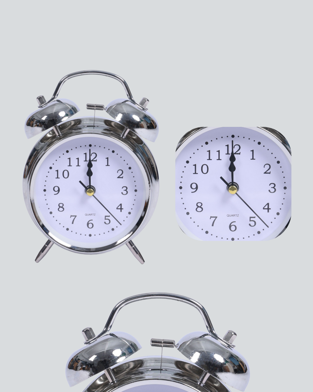 Yuvarlak Gümüş Dekoratif Işıklı Masa Üstü Saat Alarmlı Sessiz Çalışma